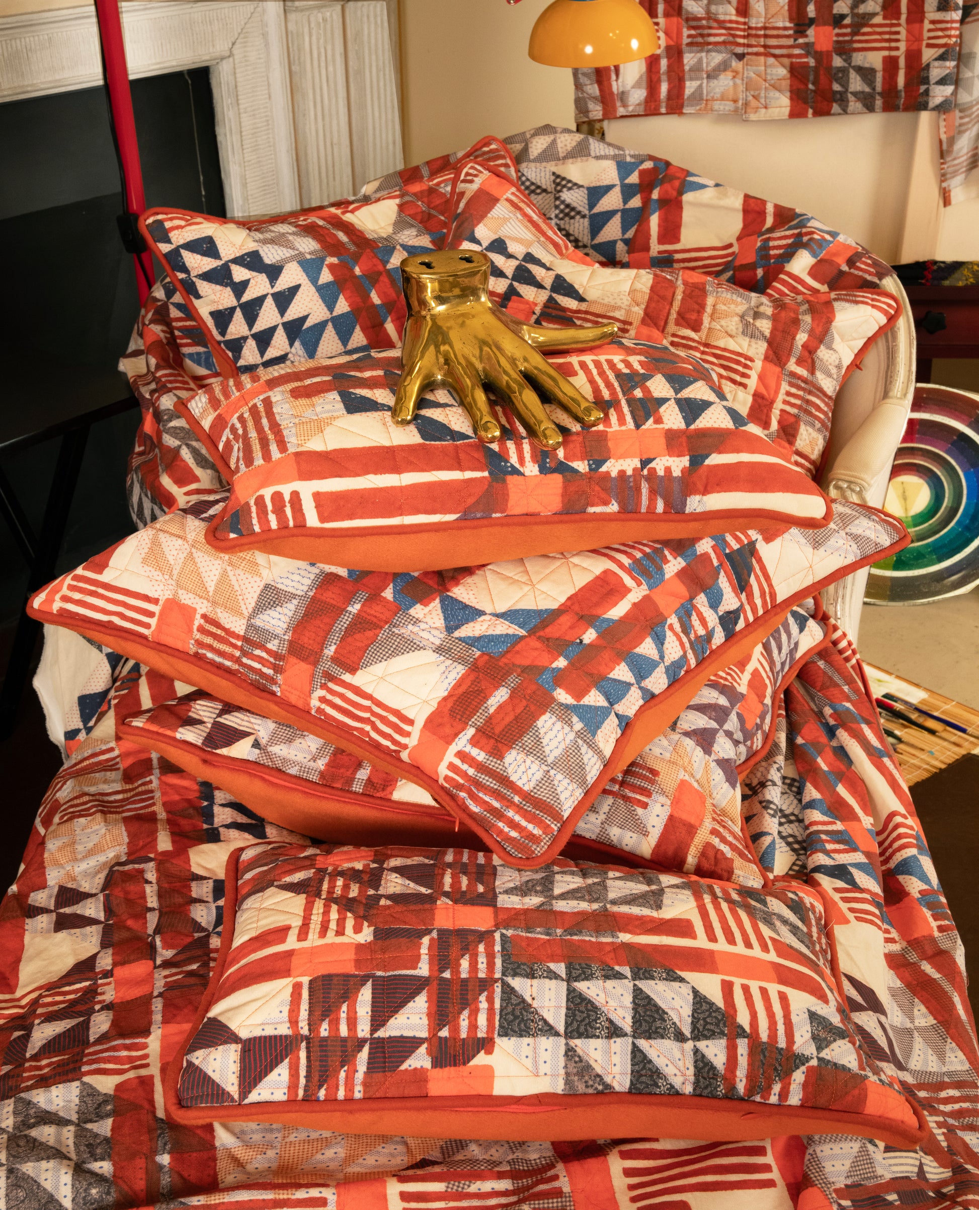 Hand Guided Quilting with Abstract Triangle Flying Geese pattern reflecting the original quilt work