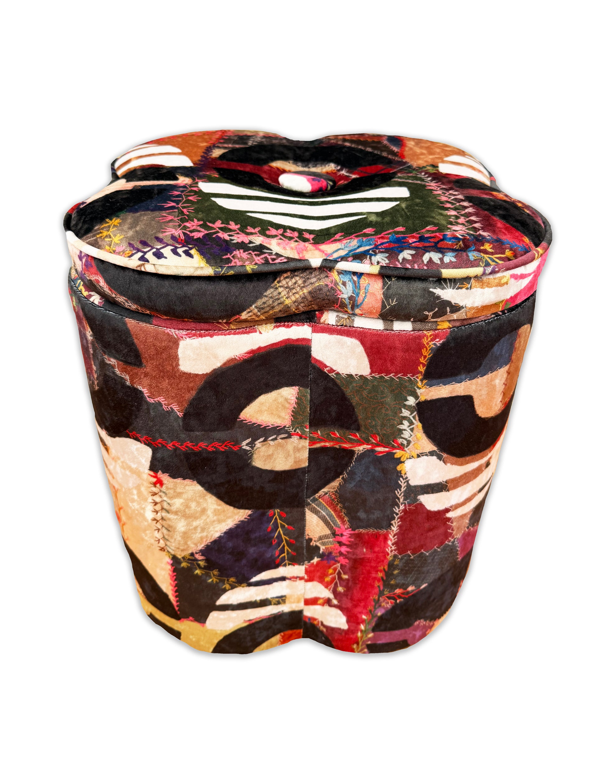 Functional as well as unique, each ottoman is accented with hidden interior storage. Available in all Patternier patterns and colorways crafted in your choice of french linen or rich velvet.