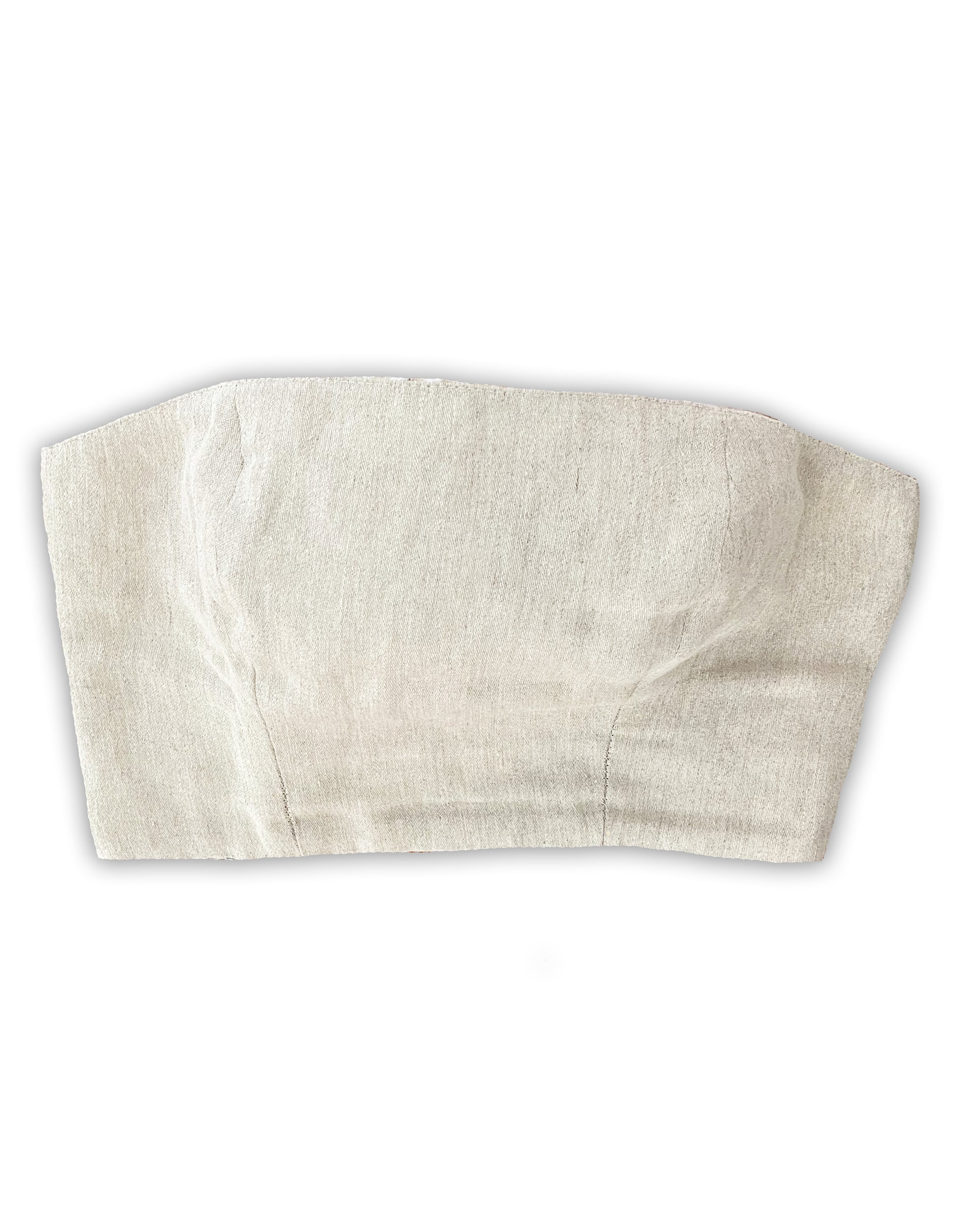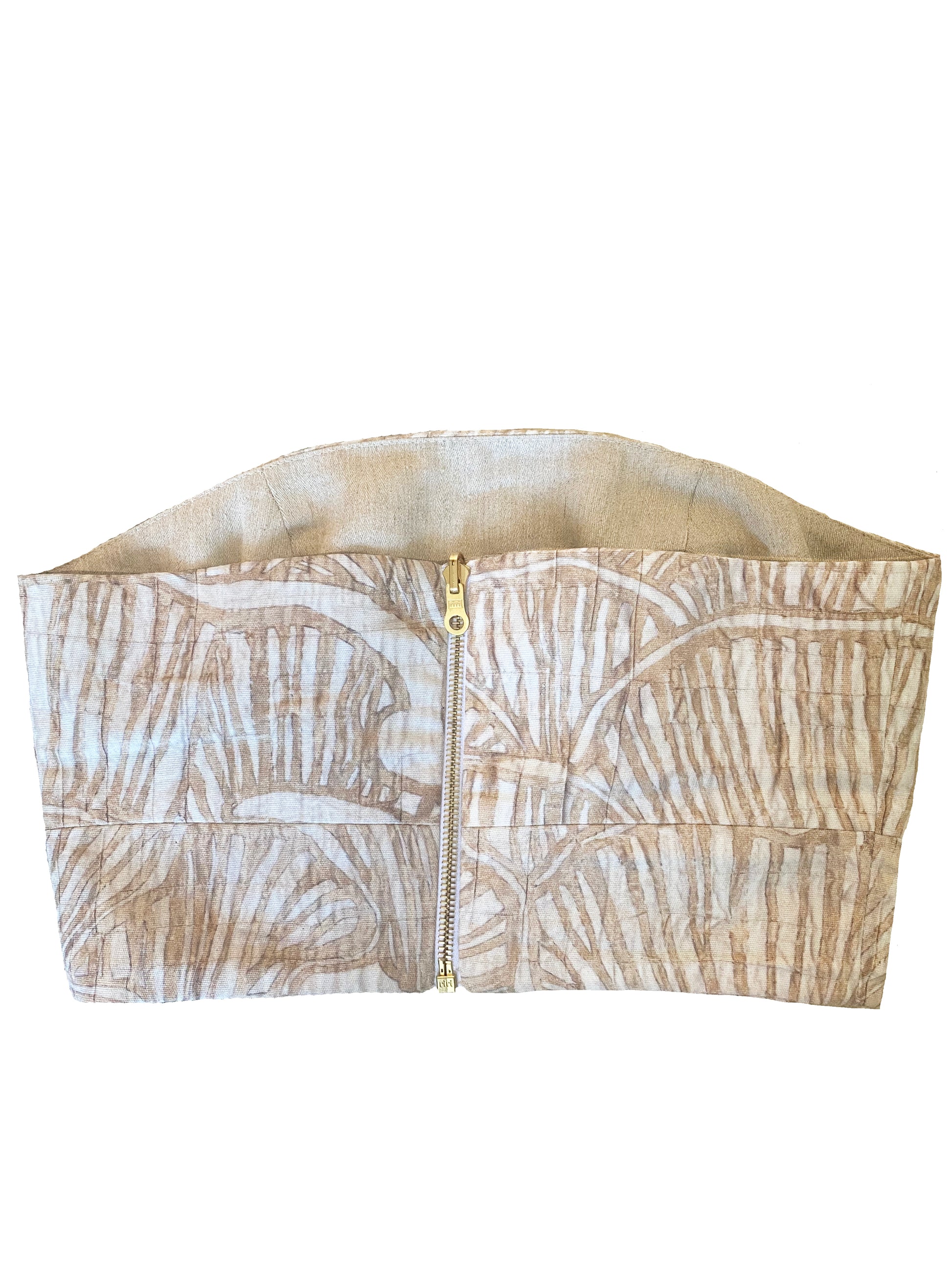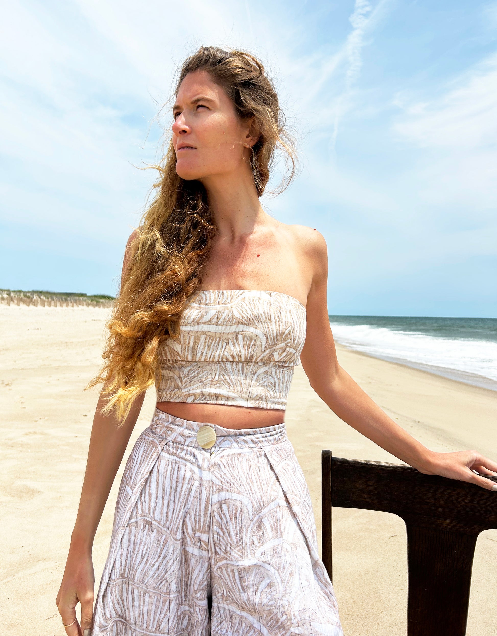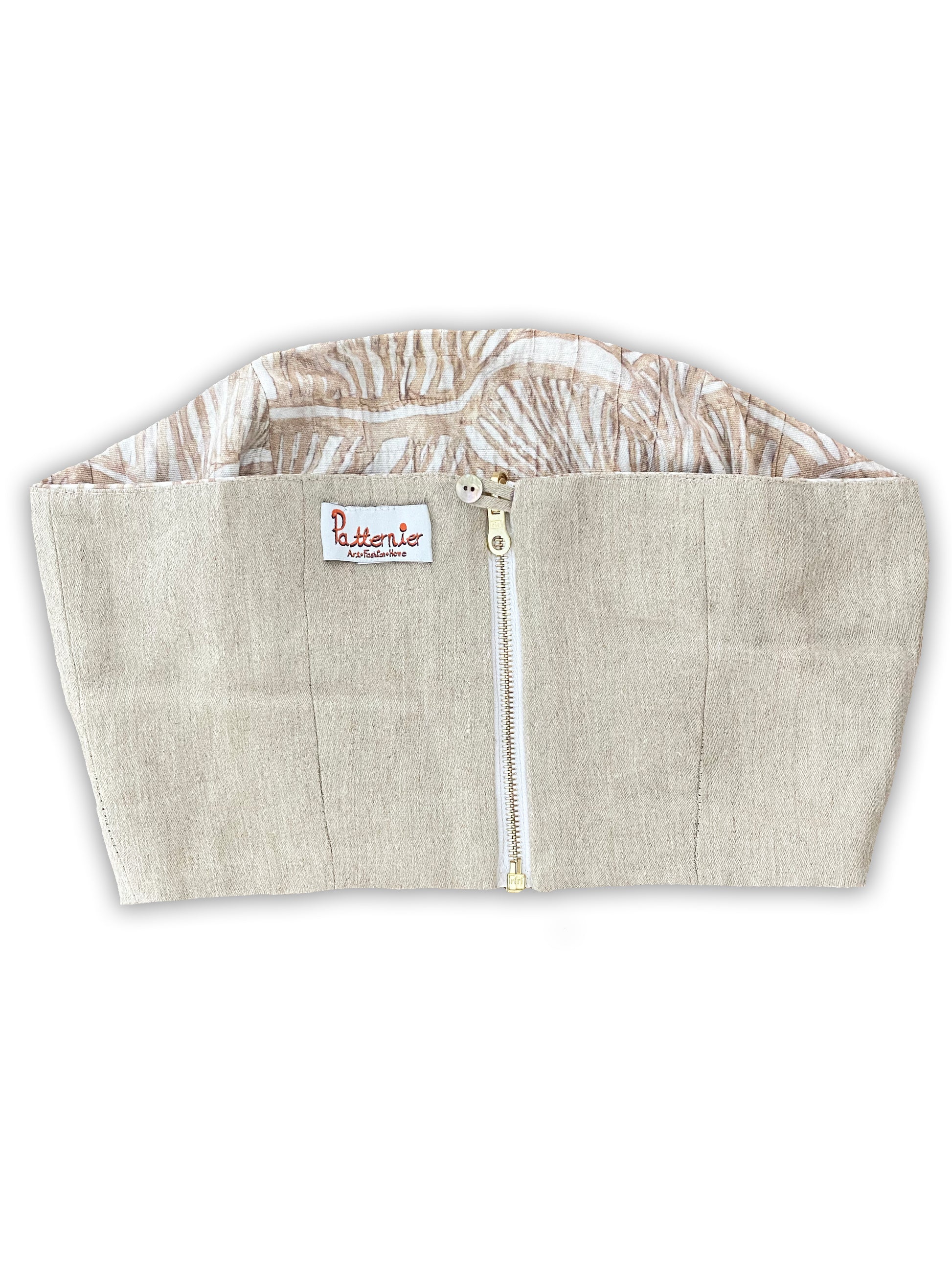 One Side with Serene Maximalism Pattern reversing to Linen Chambray with Natural and Ivory Yarns