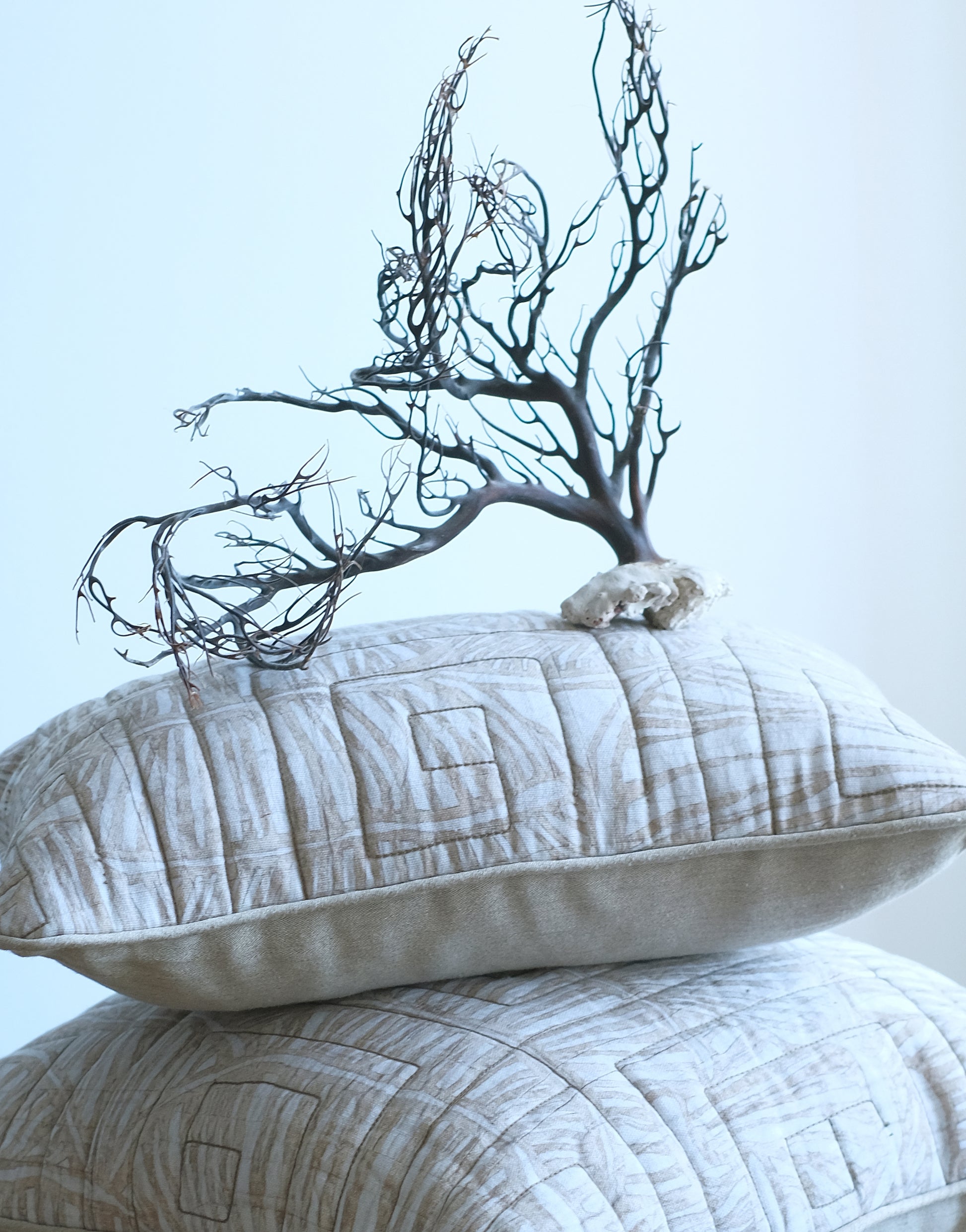 Serene Maximalism Print Front, Solid Linen Natural Chambray on back