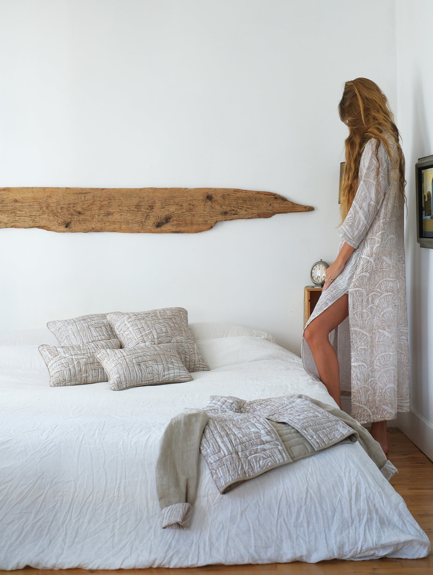 Serene Maximalism Print Front, Solid Linen Natural Chambray on back