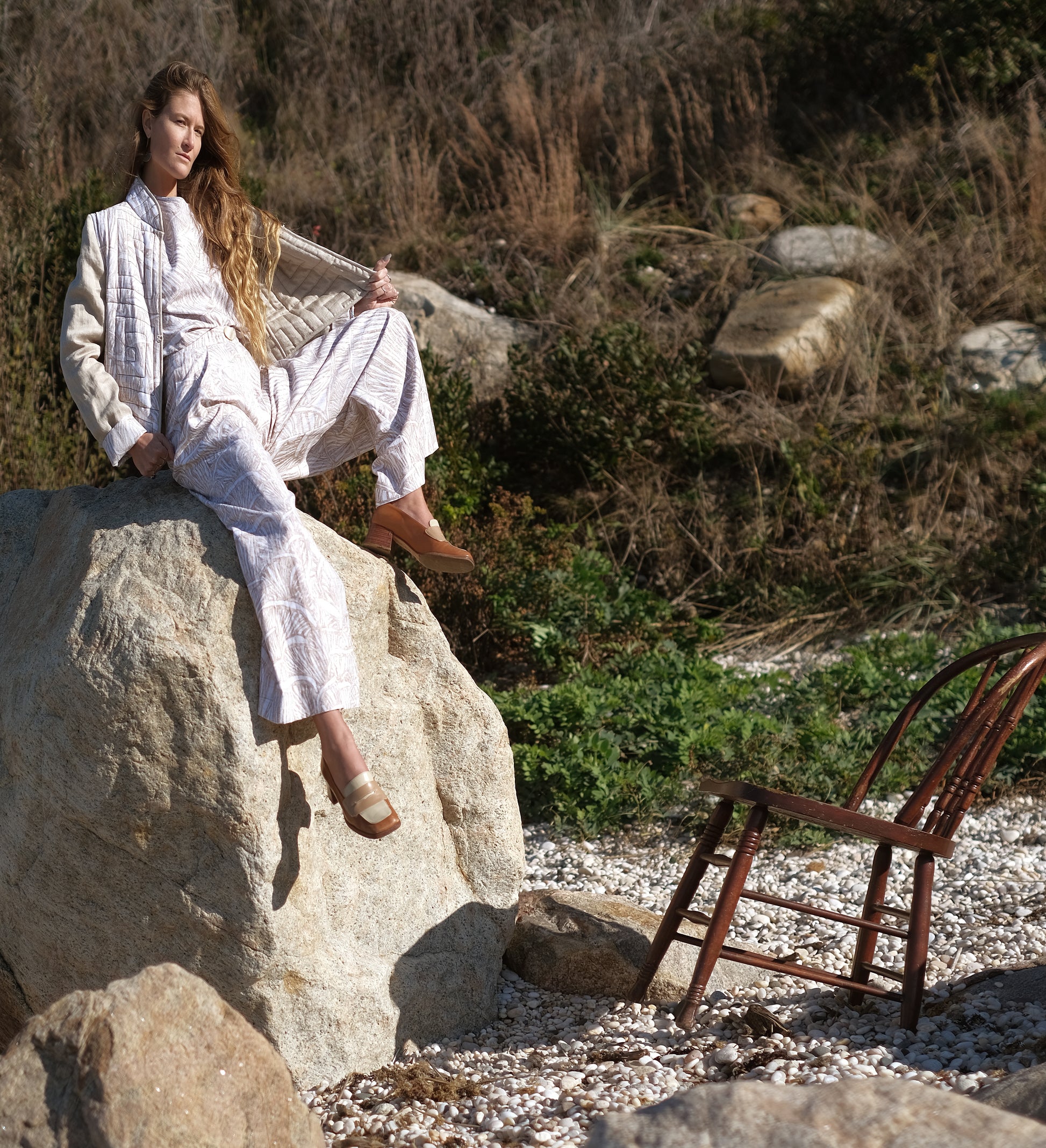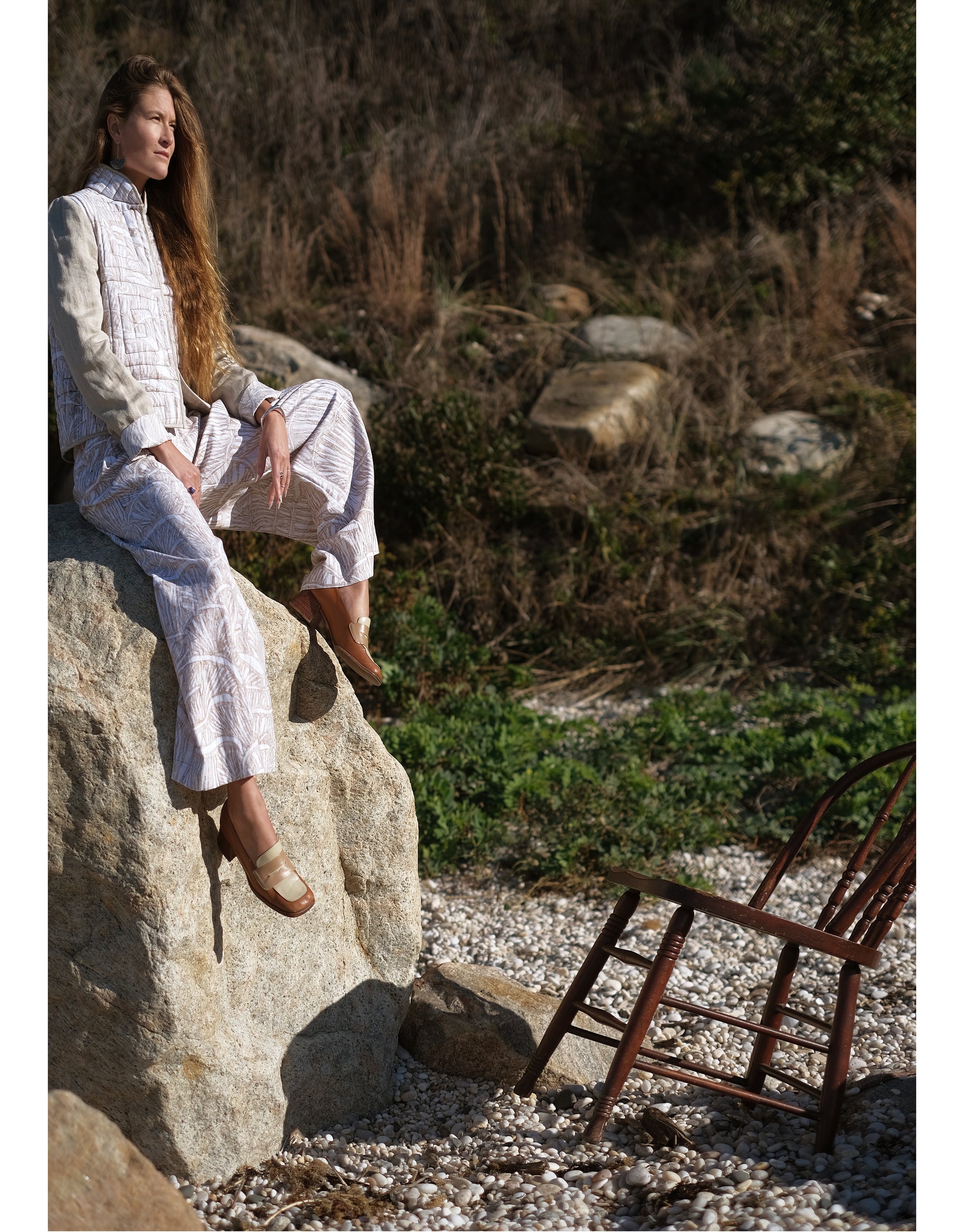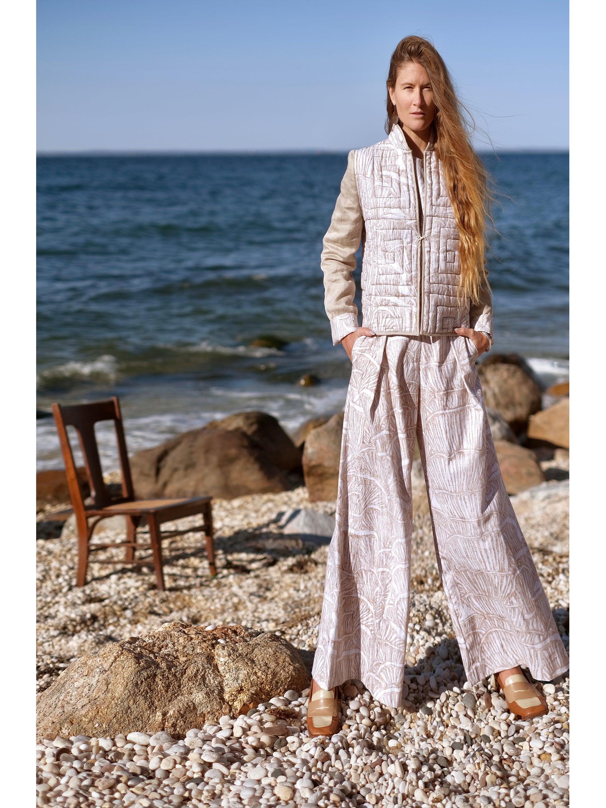 Printed with Serene Maximalism Pattern on 50% Cotton Duck, 50% Linen Chambray