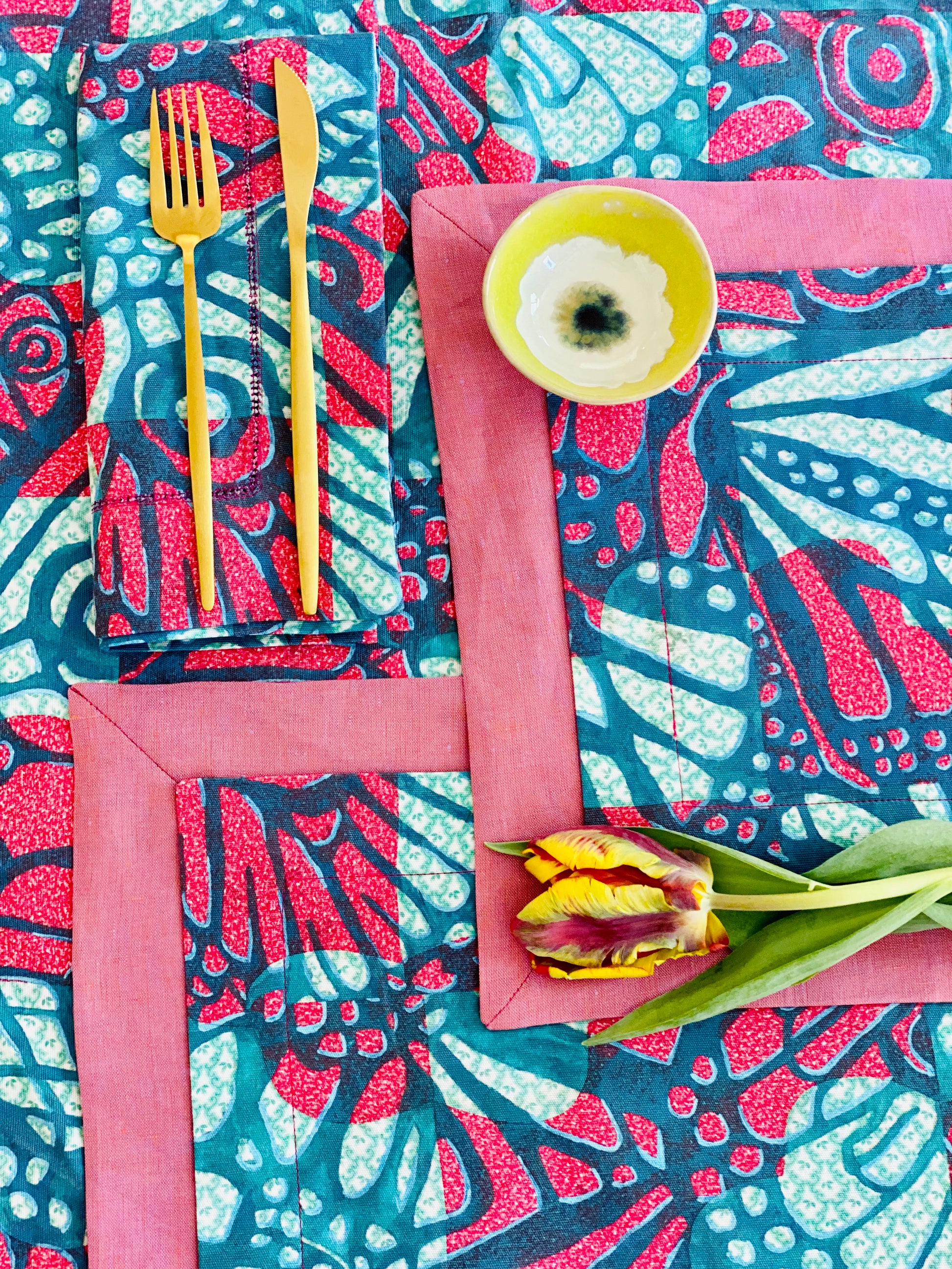 Double-Layered with Chambray linen and Surrealism in Flight Pattern