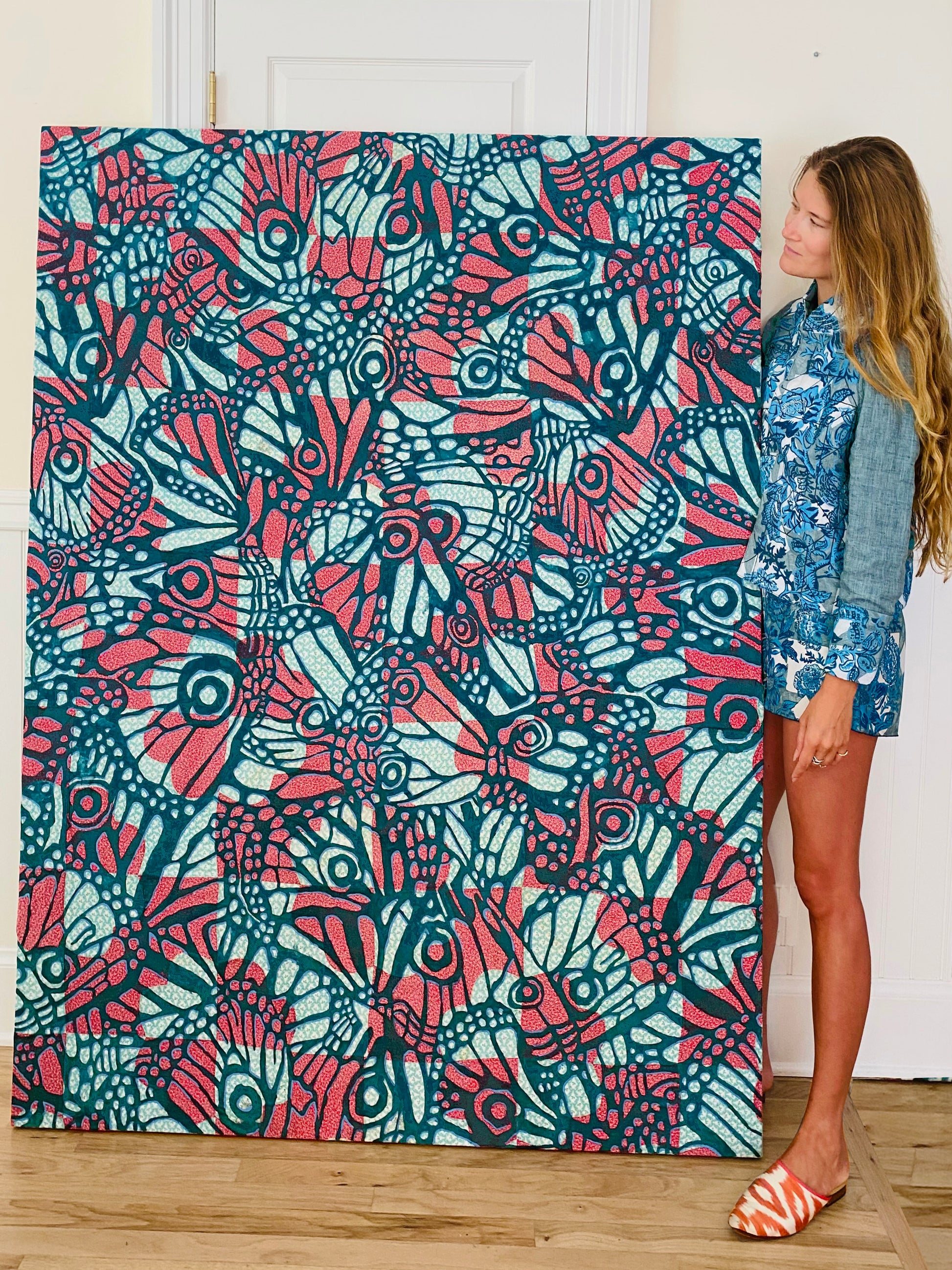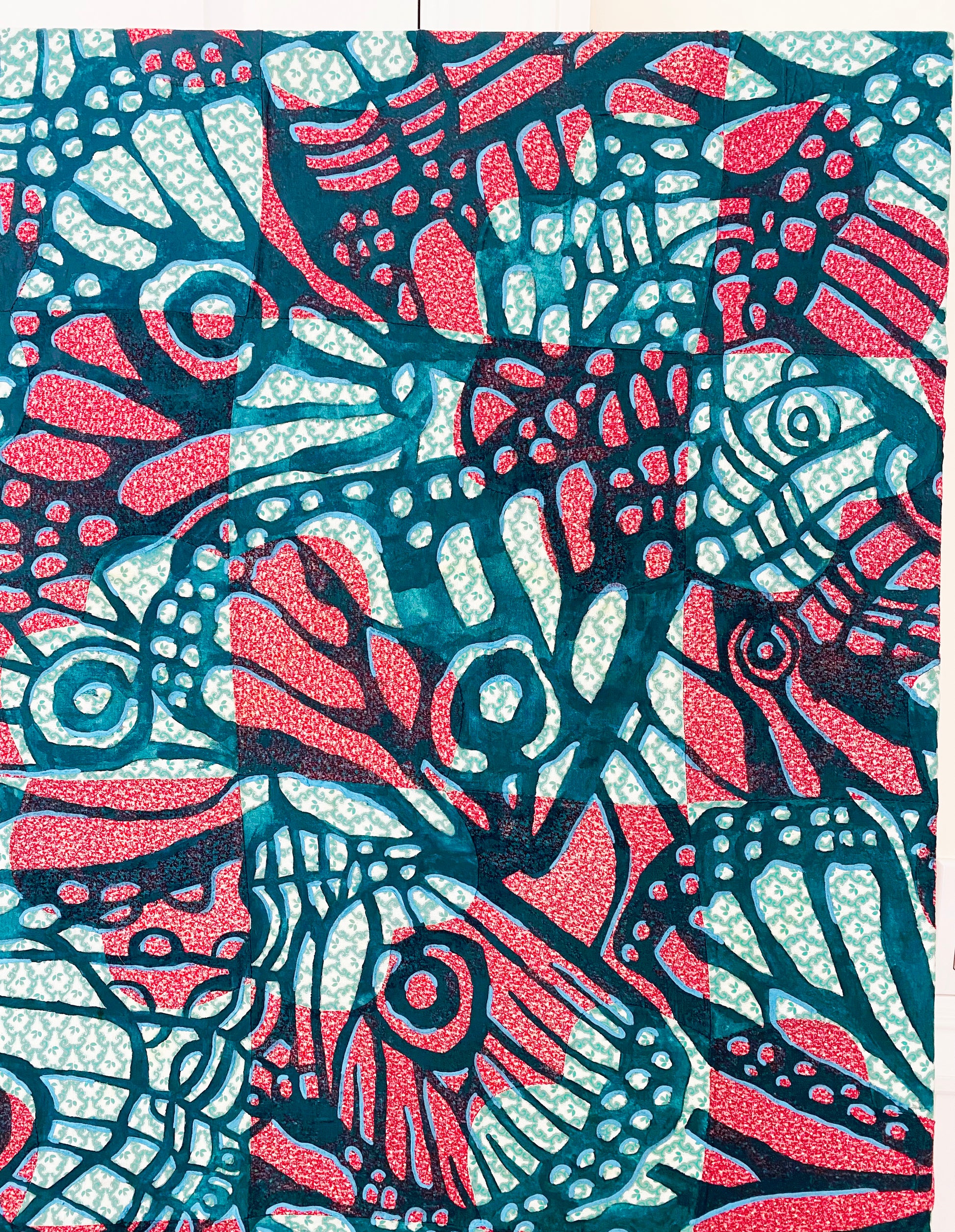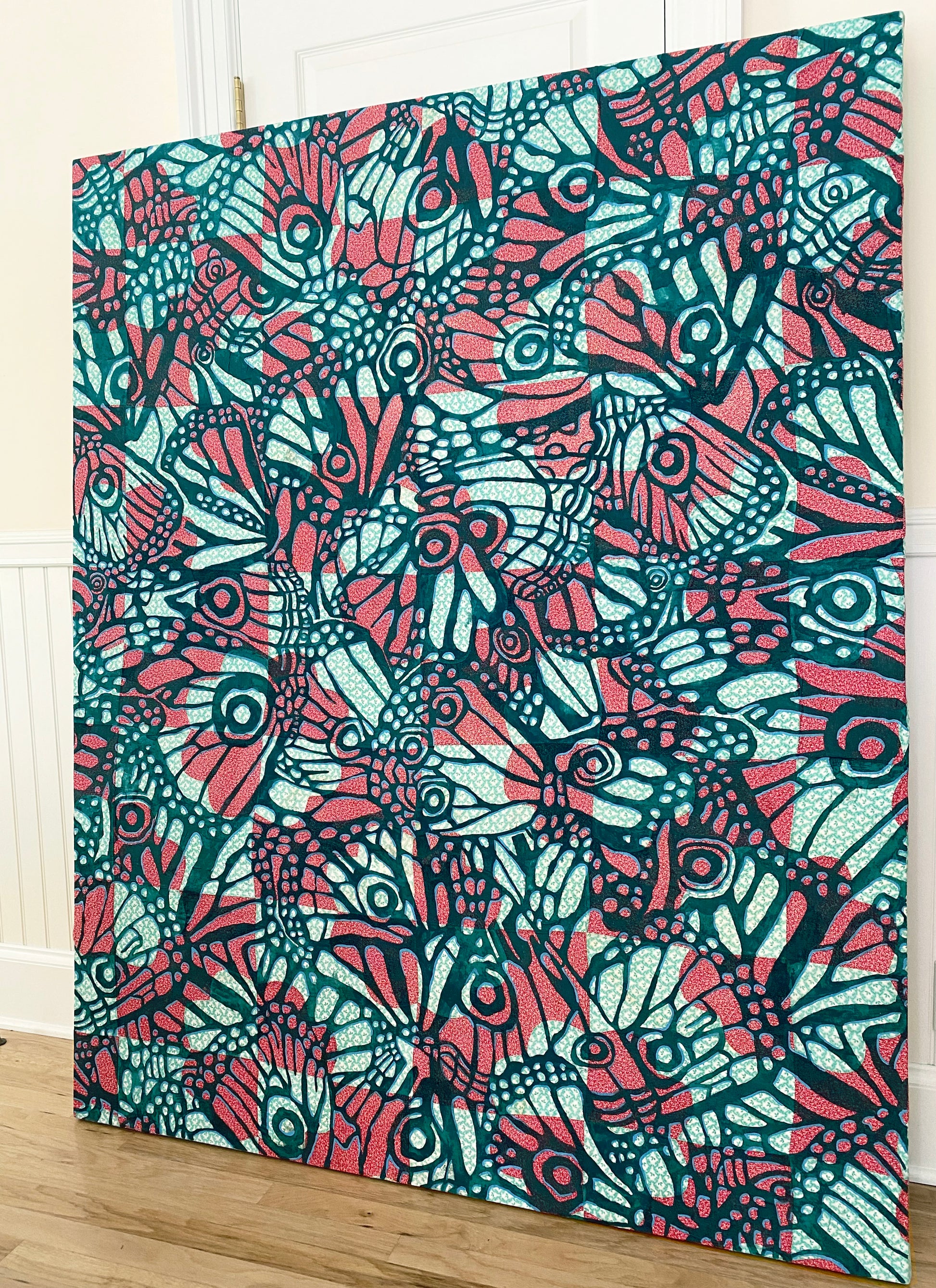 Hand-painted with Fabric Paint with original designs to create the Surrealism in Flight Pattern