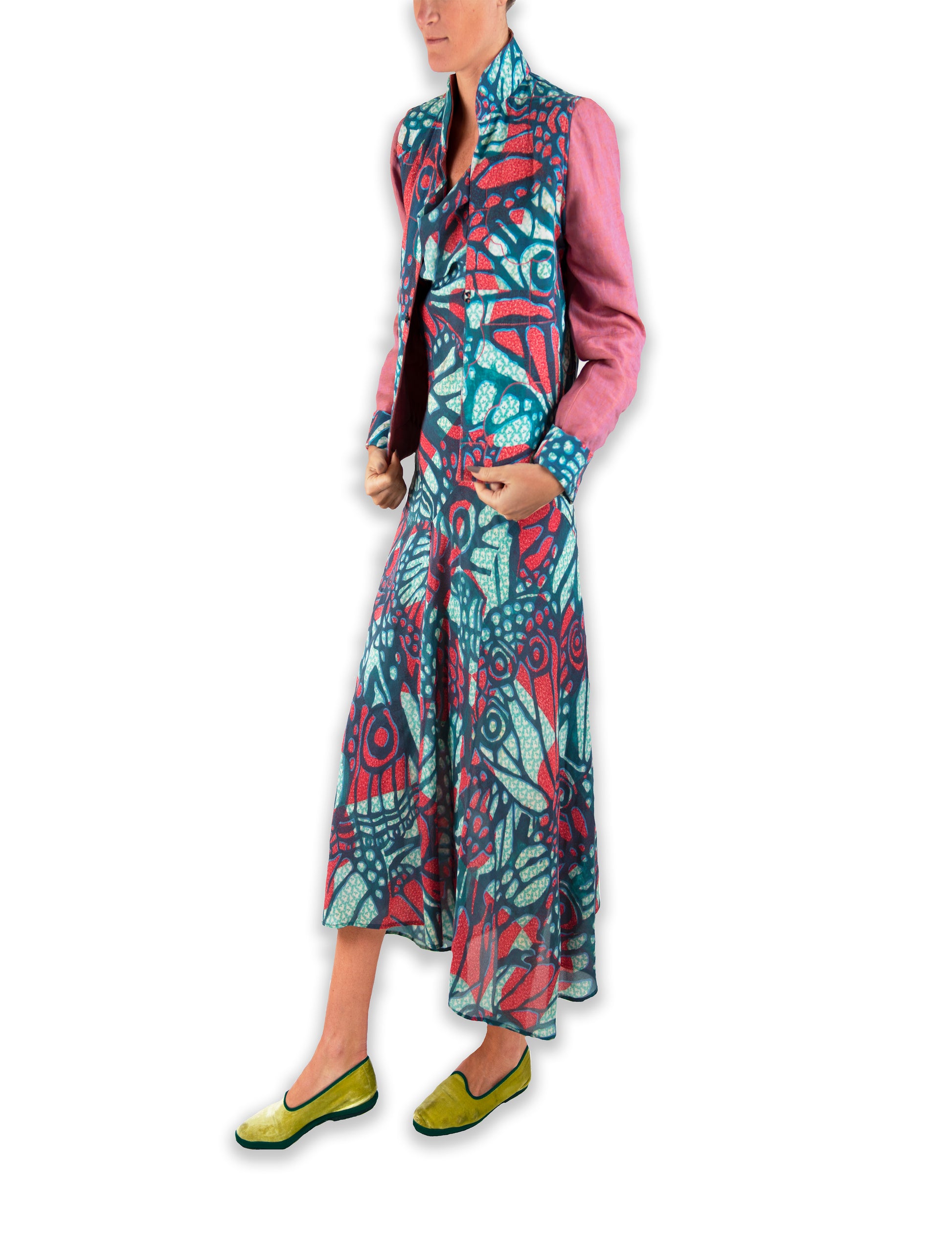 Surrealism in Flight Patchworked Pieced Silk Dress