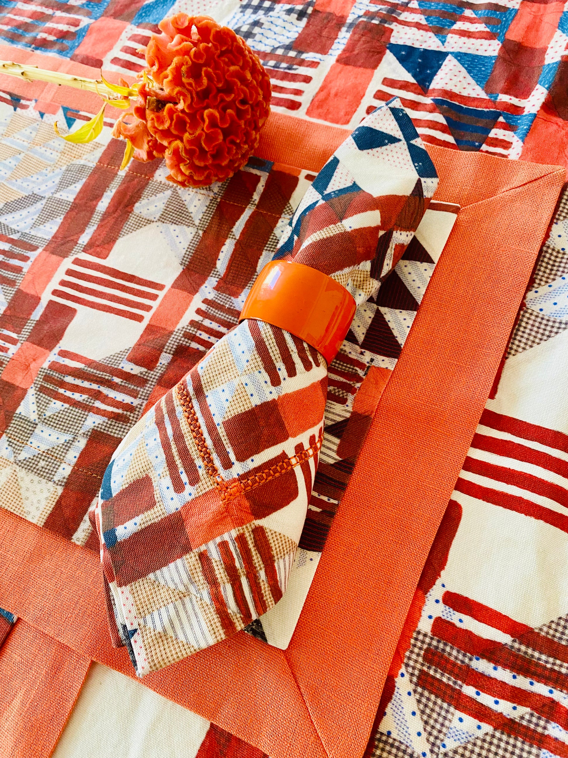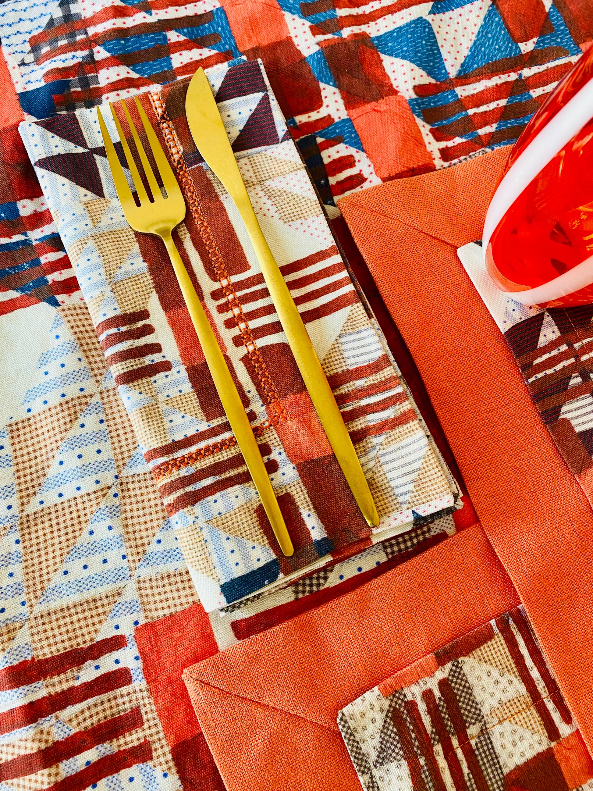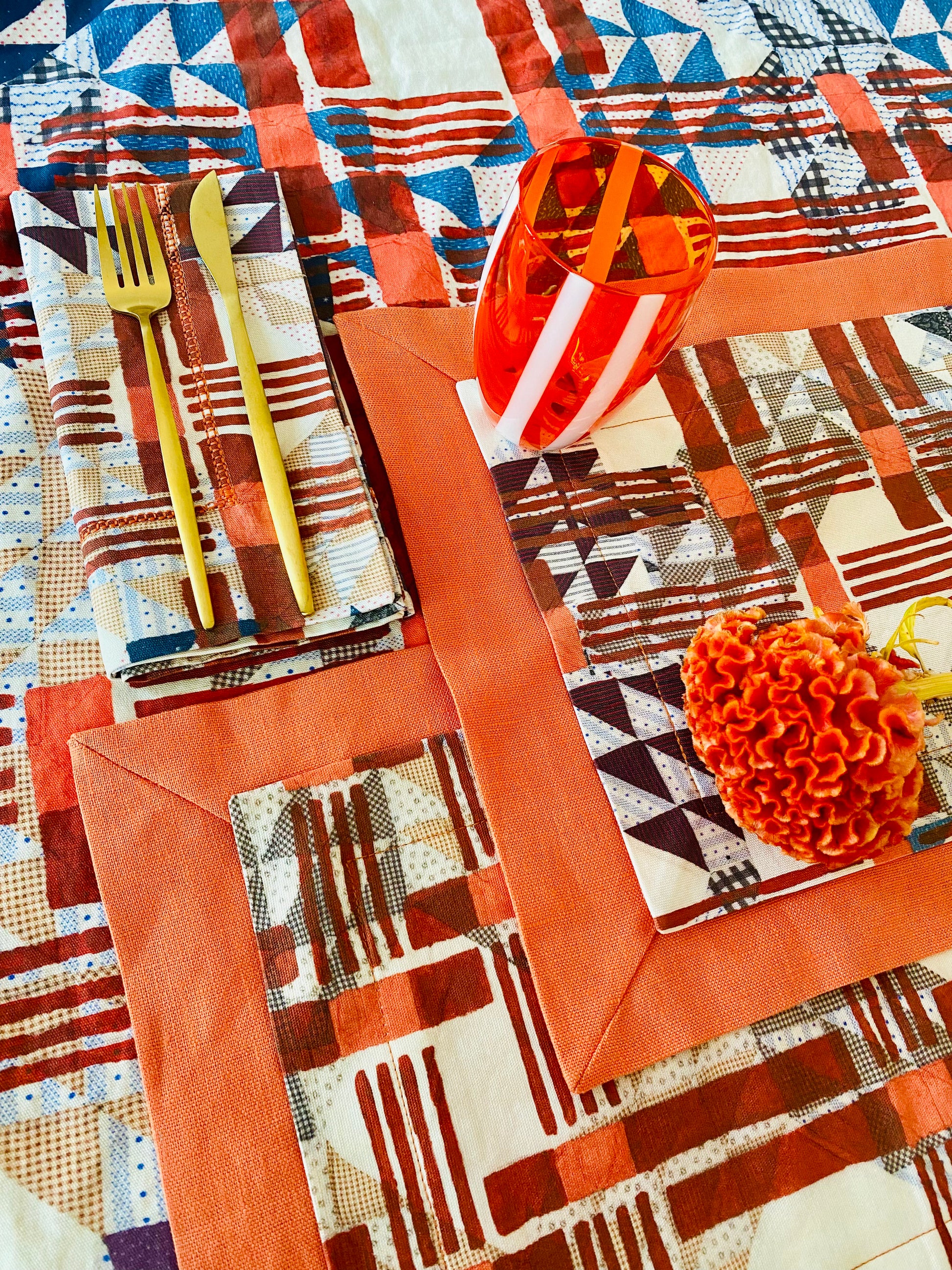 Double-Layered with Chambray Orange linen and Urban Cross-Over Pattern