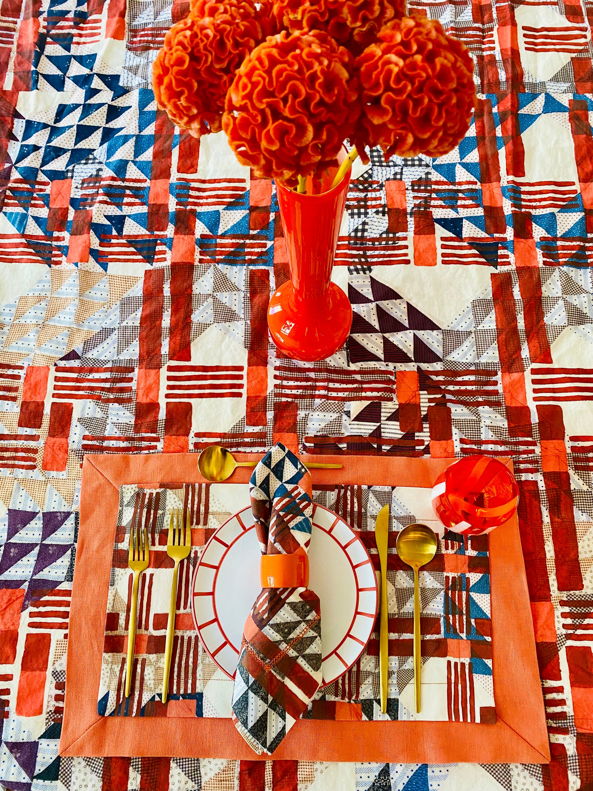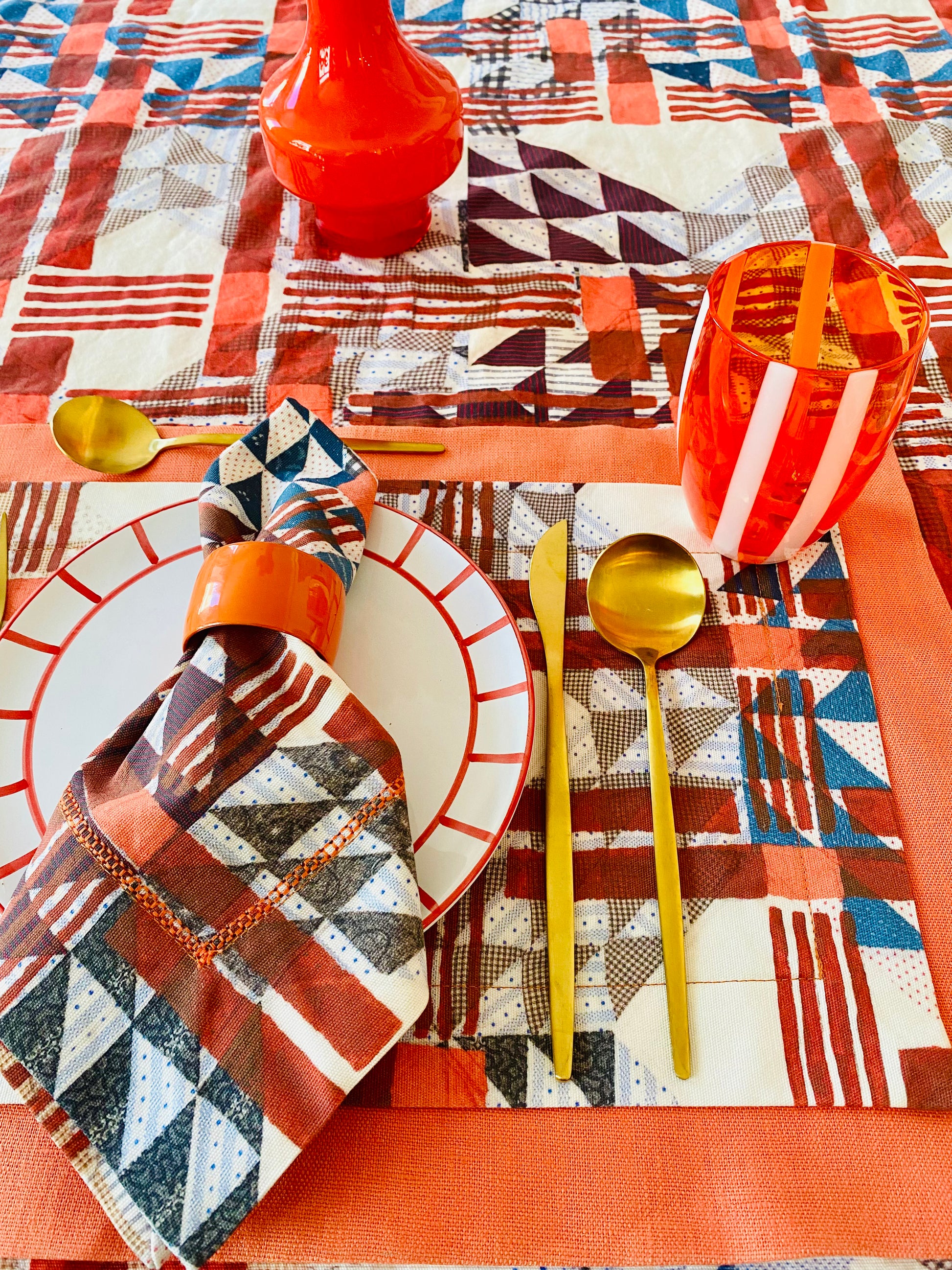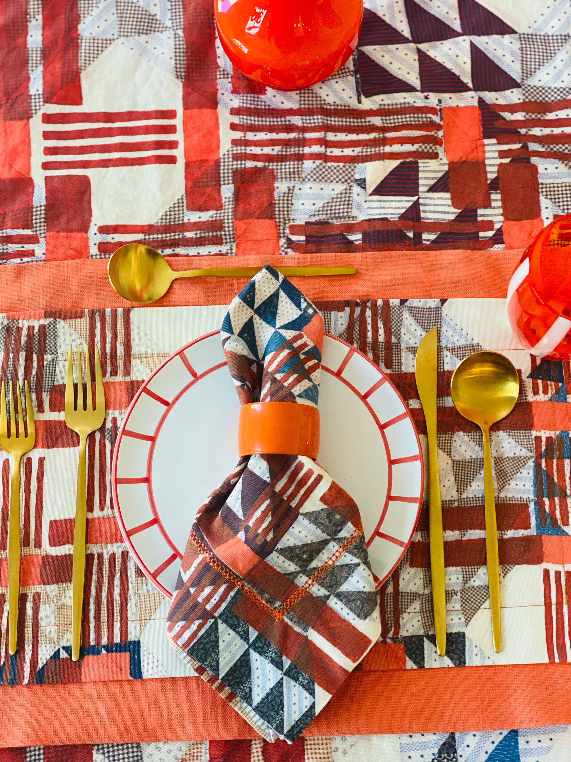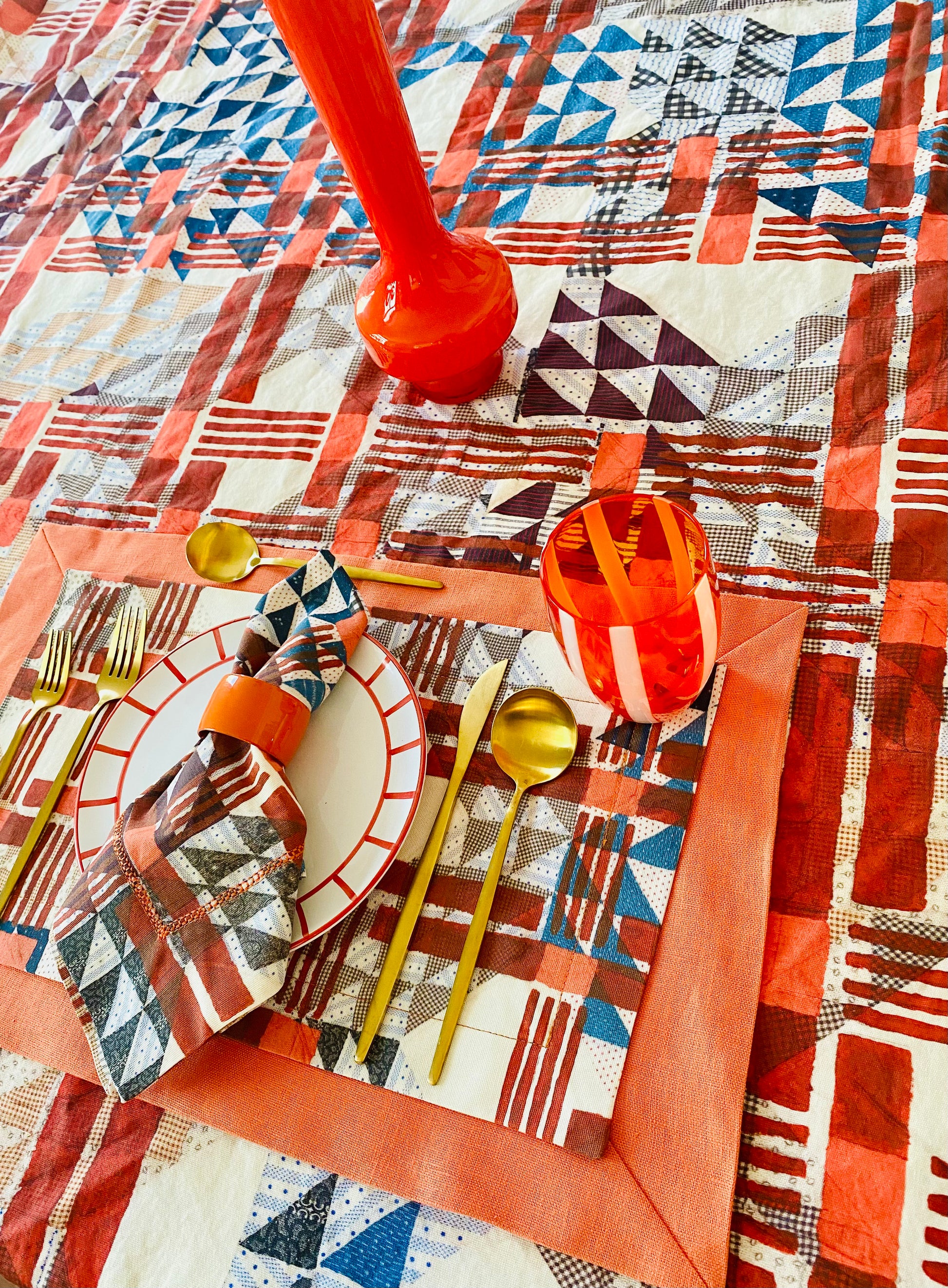 Double-Layered with Chambray Orange linen and Urban Cross-Over Pattern