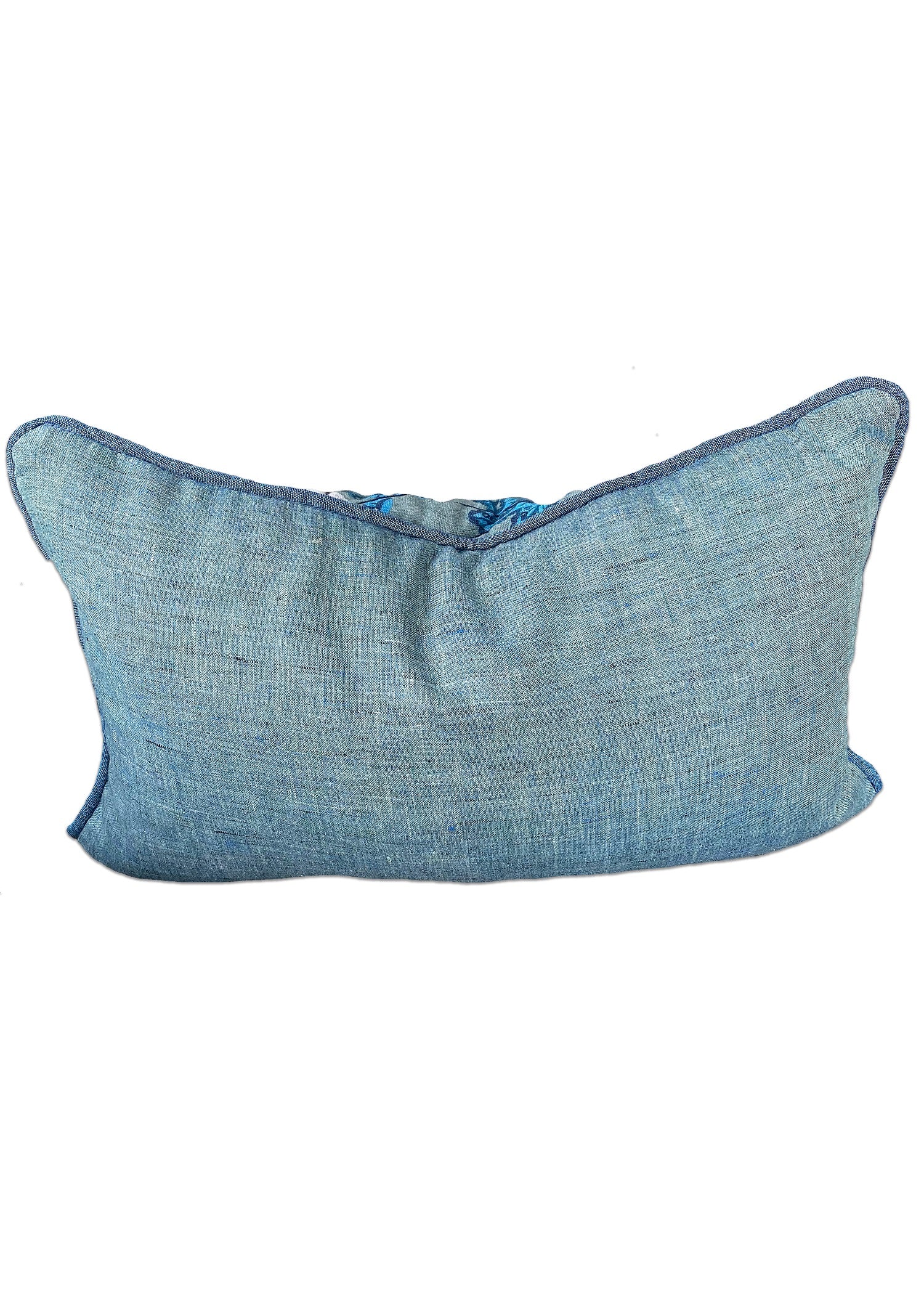 Whimsi Print Front, Solid Linen teal chambray fabric on the back
