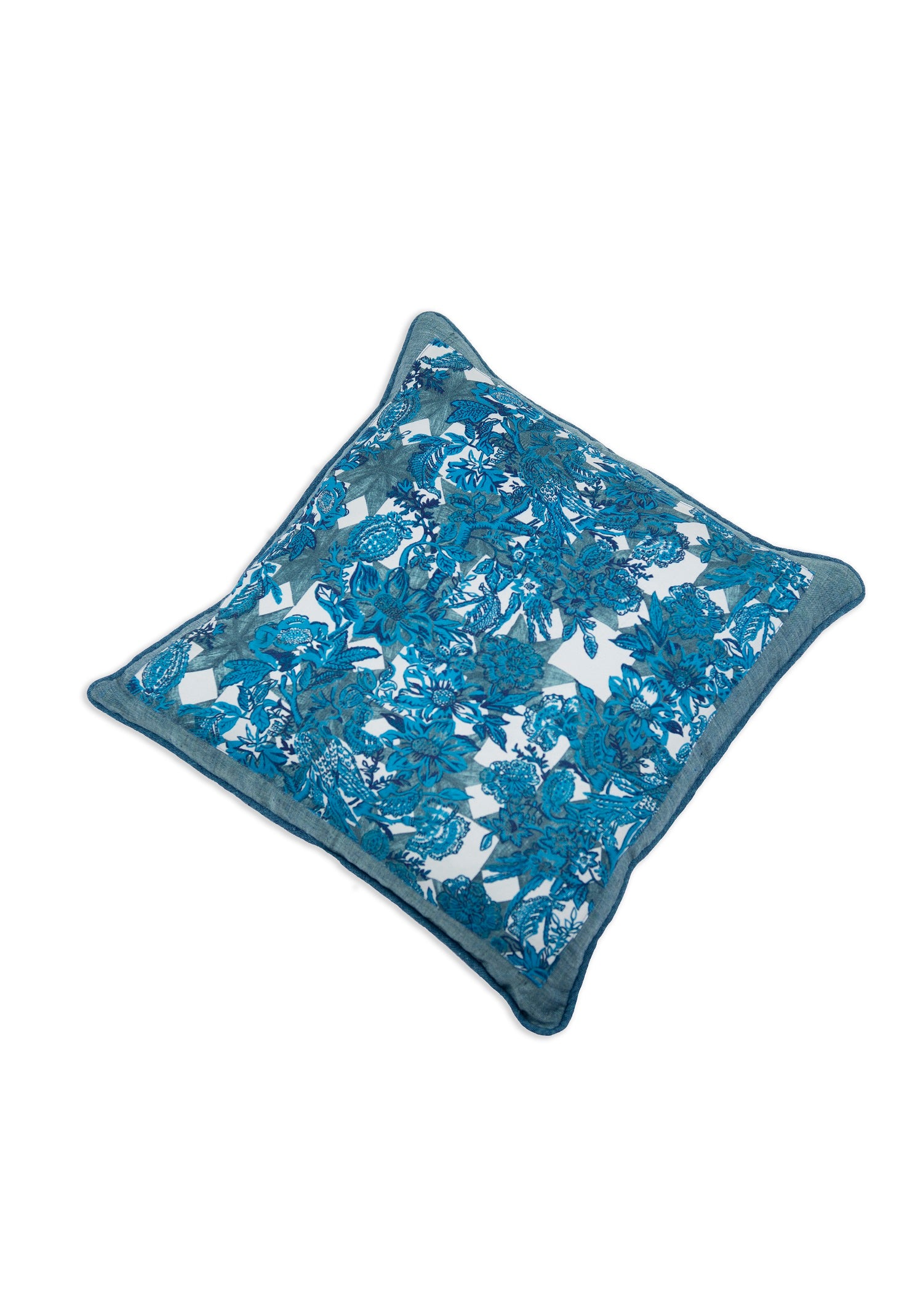 Appliqué: 100% Silk Twill, Pillow: 100% Linen Chambray