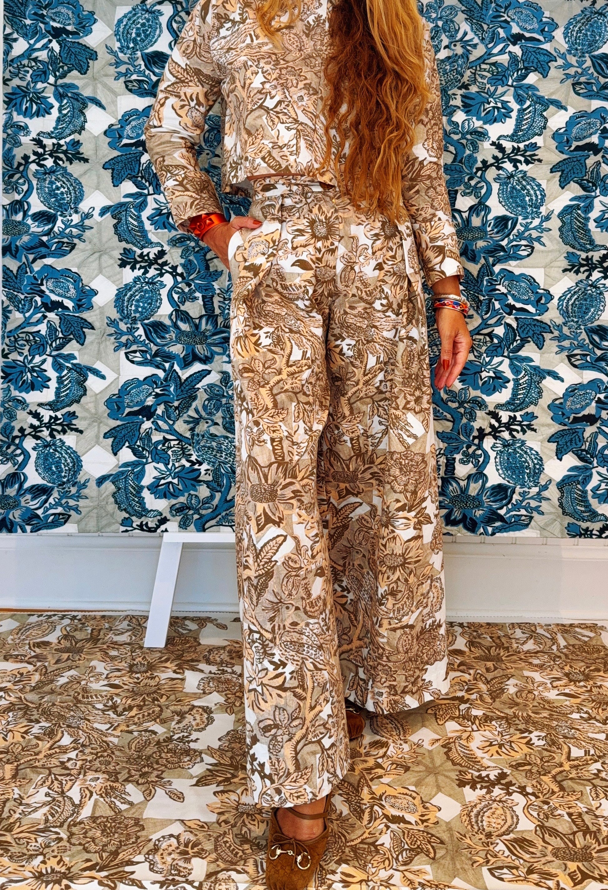 Printed with the Whimsiculture pattern in Camel Sepia Colorway large scale, on 100% Cotton Duck